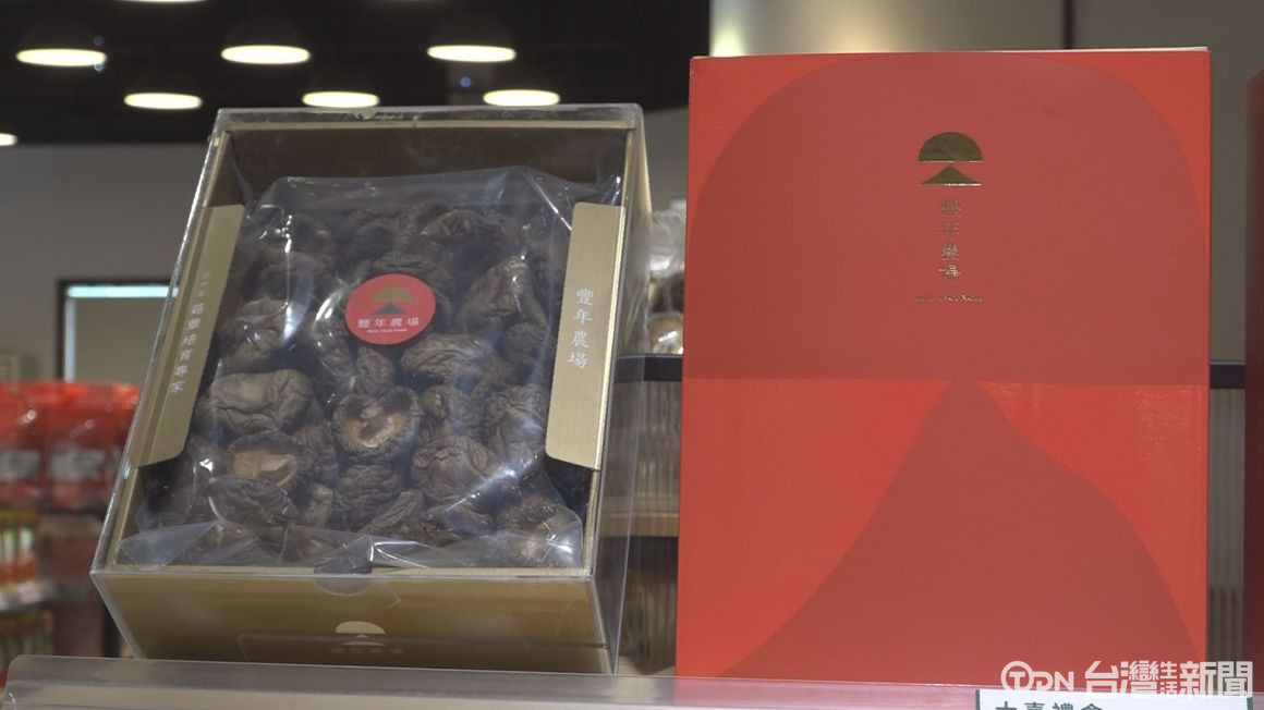 ▲搶攻年節送禮市場,大紅包裝香菇禮盒相當搶眼。/記者 王昭聖 攝