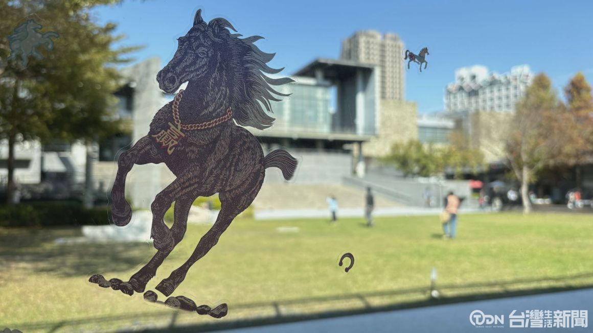 ▲除了春聯,國美館還有馬年版畫、年畫紅包袋及年畫靜電貼等,要和民眾分享/記者 李晉仰攝