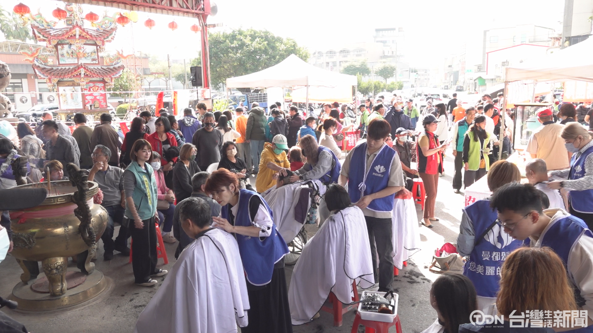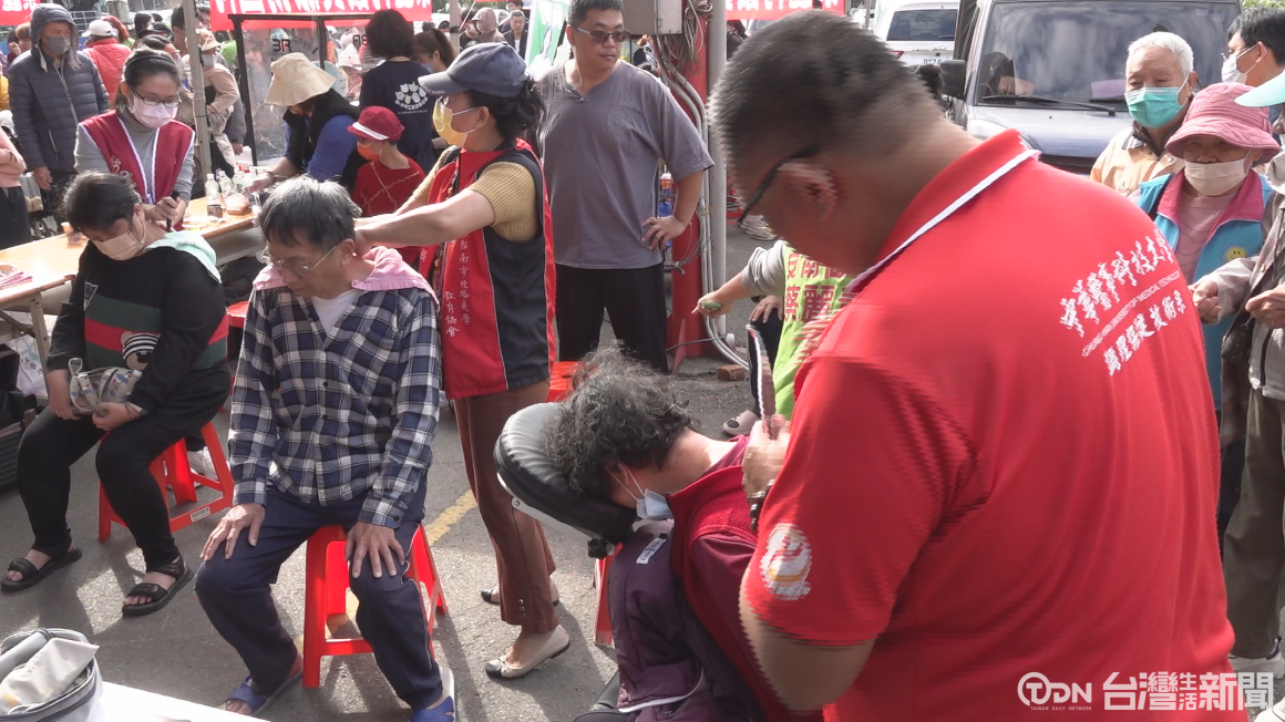現場除了邀請書法老師寫春聯免費贈送,還安排義剪跟按摩服務,並且聚集各界愛心準備物資發放,社會局長也到場感謝。