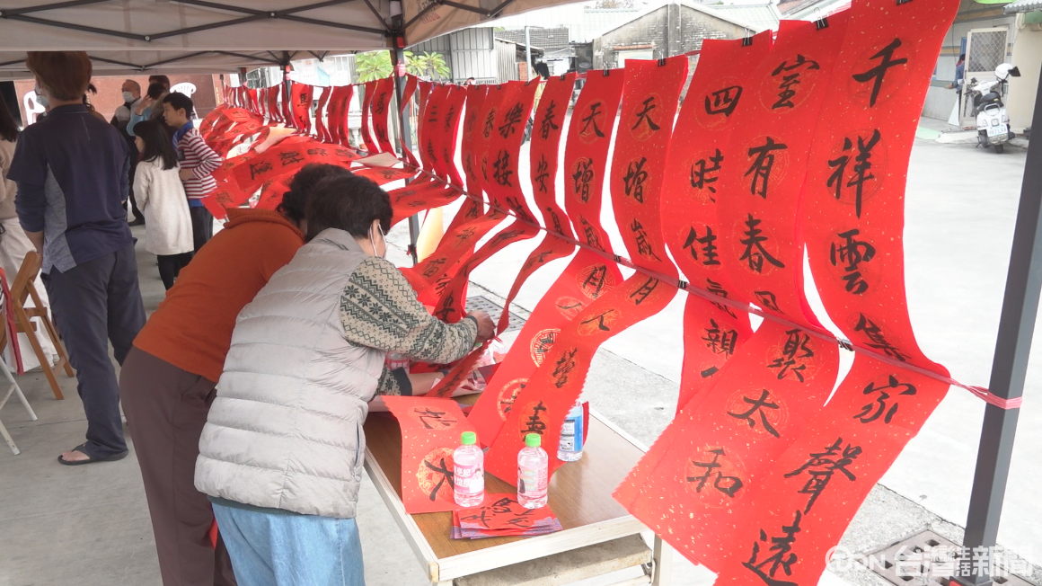 臺南社區大學台江分校推動大廟興學,在新春時刻動員書法社5個班級,上百位師生發起巡迴廟口寫春聯列車,第1站選擇從公親寮親水寺出發,一大早透過里長王金樹的廣播放送,多位民眾都來索取,感受手寫春聯的溫度,也提前感受過年的喜氣。