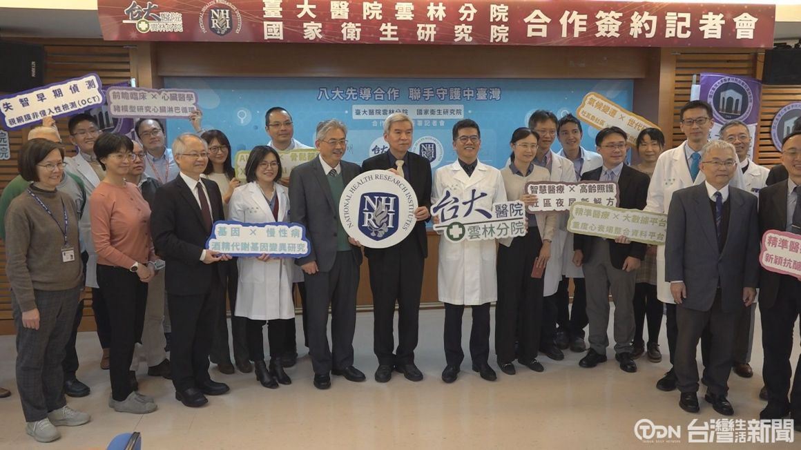 臺大醫院雲林分院和國家衛生研究院,28日簽署MOU,宣布115年度8項先導合作研究計畫正式啟動。本次的合作計畫由臺大雲林分院臨床團隊與國衛院研究人員共同主持,重點包含智慧醫療與數位健康應用、世代研究與環境健康、生物醫療與轉譯醫學,以及慢性病與神經退化疾病的精準監測。透過結合數位科技的方式,解決高齡族群相關問題;也藉著人工智慧分析、大型動物模型等工具來提供骨質疏鬆篩檢新模式,也探索心臟疾病治療新方法,希望為未來精準治療與公共衛生決策提供基礎。