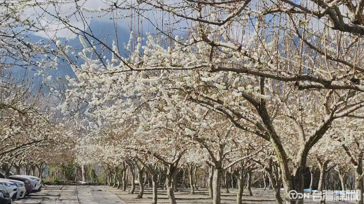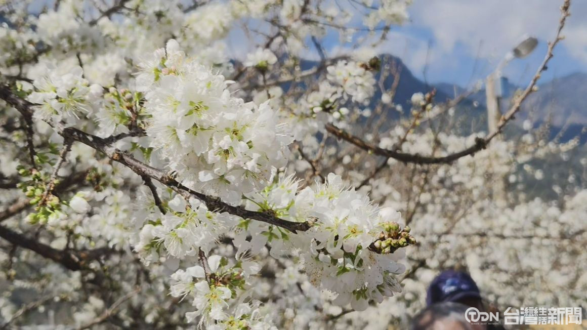 信義鄉草坪頭除了櫻花美景,雪白的李花也大受歡迎,今年受到氣候影響,一月底就開始開花,園區中14號停車場,李花更是已經開了四到五成,預計二月初進入黃金賞花期,雪白的李花搭配垂櫻美景吸引大批遊客前來拍照參觀。