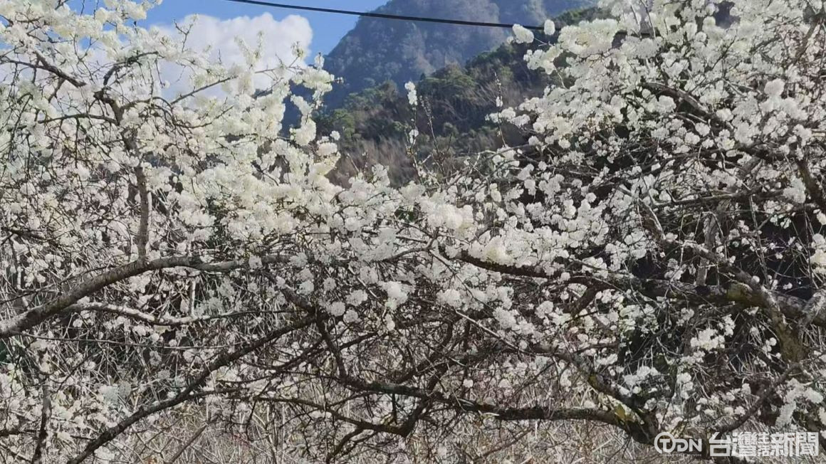 信義鄉草坪頭第14號停車場,由農民栽種的黃肉李品種,受到氣候影響,已經提早開花,花開將近五成,預計這周末1/31將是花開最美的時段,農民歡迎鄉親遊客前來欣賞拍照。