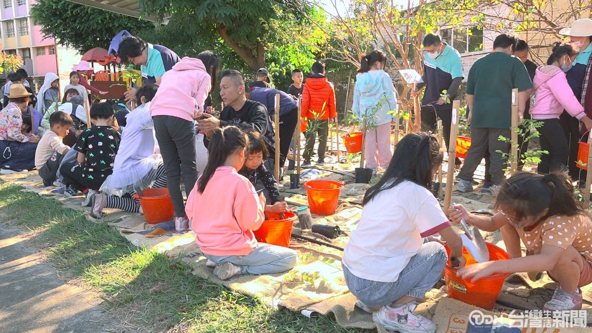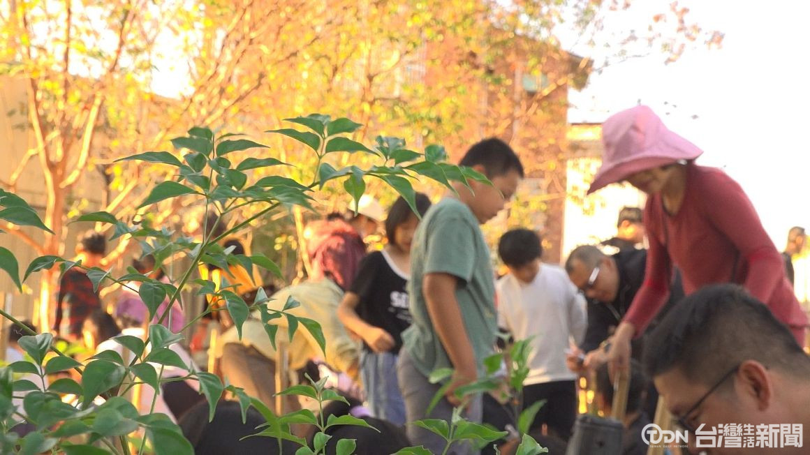 ▲師生在校園內的土地,經過專業人員的指導,種下台中原生樹種/記者 陳昭安攝
