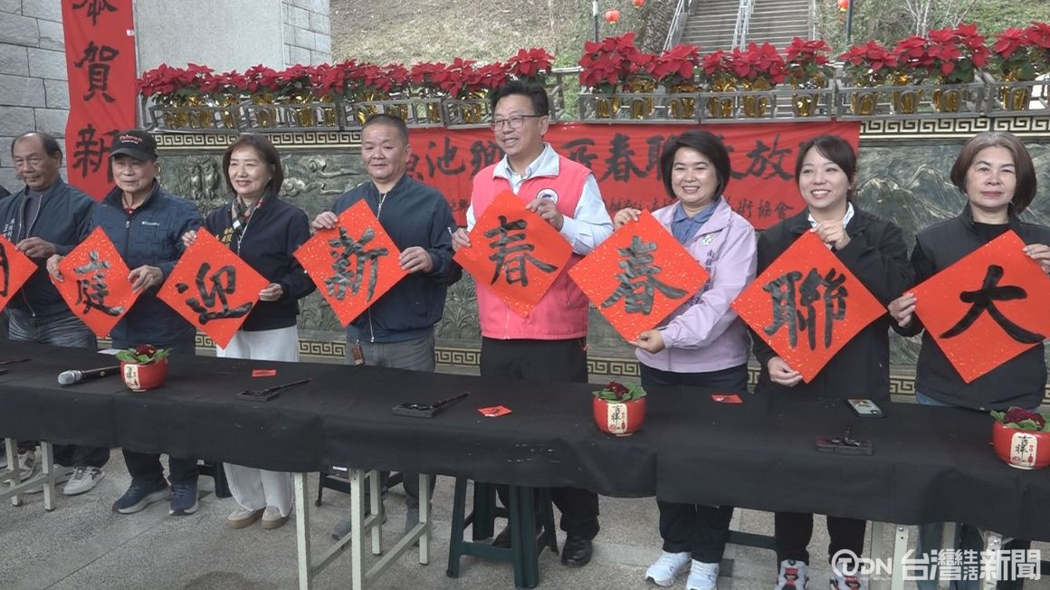 ▲為了迎接農曆新年來到,每年魚池鄉公所都舉辦書法名家寫春聯的活動,並且巡迴13村,鄉長、縣議員、村長帶頭寫春聯,祝福大家新年快樂/記者 范宏坤 攝