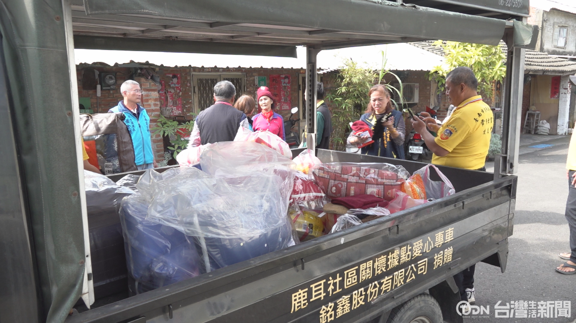 ▲鹿耳社區理事長蔡登進號召多個愛心團體力量,募集棉被、毛帽跟民生物資慰問獨居。/記者 蘇英豪攝
