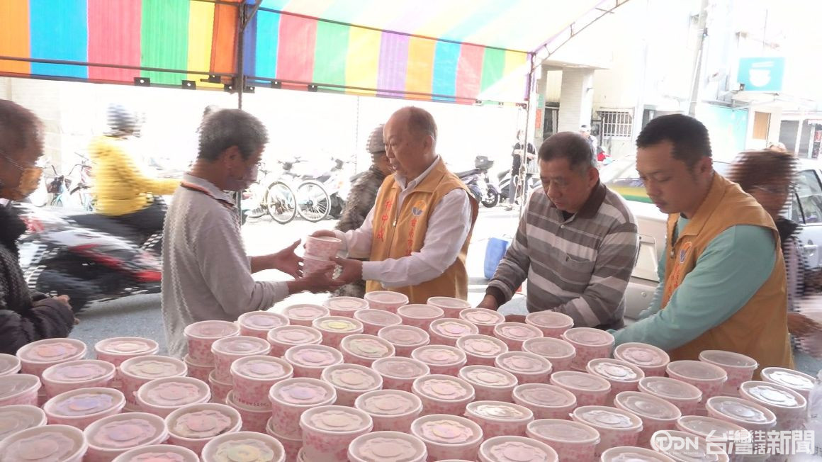 ▲臺南市議員楊中成特別煮2,000多碗菜頭粥,讓弱勢族群感受到社會的溫暖與關懷。/記者 蕭建緯攝