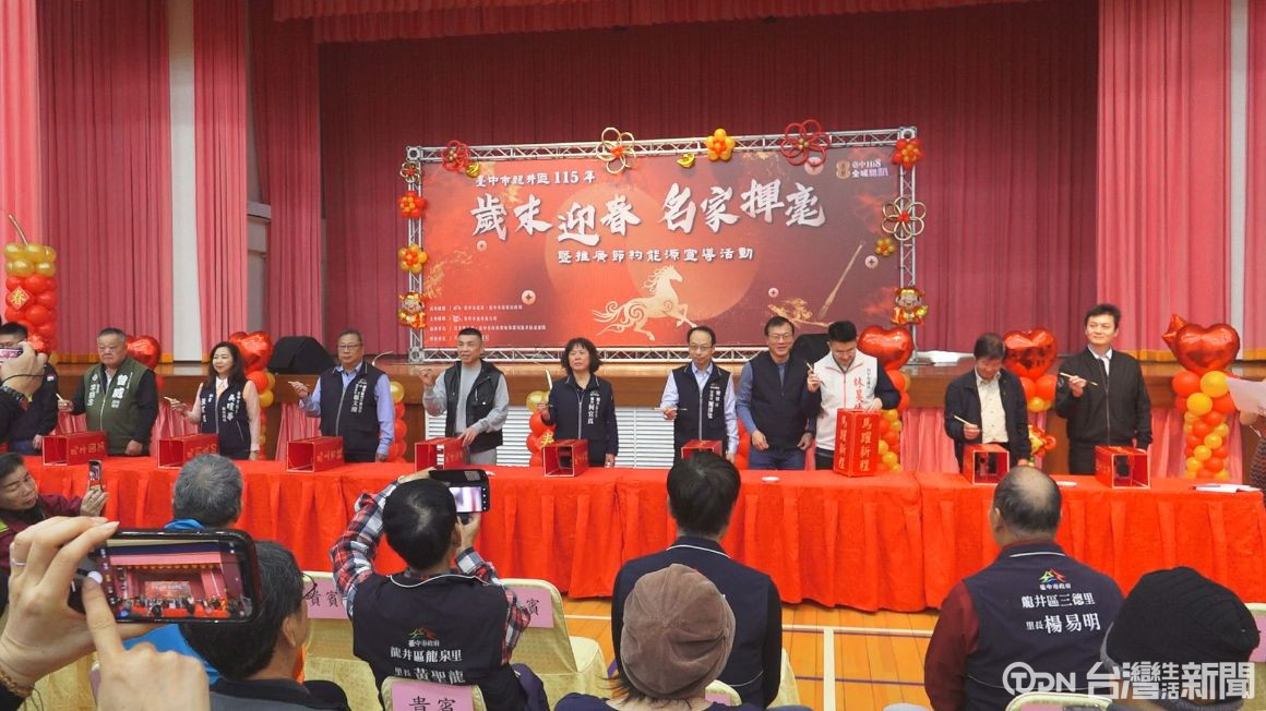 為了迎接充滿活力與希望的馬年,台中市龍井區公所舉辦歲末迎春名家揮毫活動,邀請35位書畫名家現場揮毫,為市民送上滿滿的新春祝福。活動結合春聯揮毫、吉祥年畫與節能宣導,期盼透過傳統文化與生活教育的融合,陪伴市民揮別舊歲、迎向嶄新的一年。