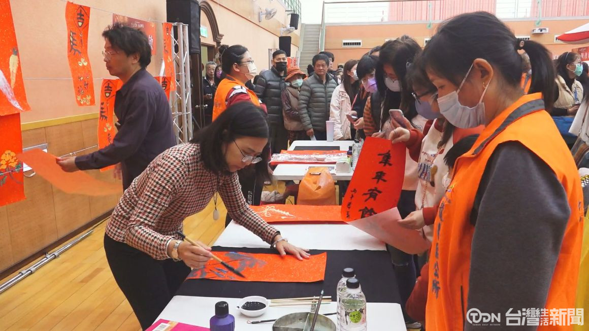 ▲現場揮毫書寫寓意吉祥的馬年春聯,並創作充滿喜氣與祝福的年畫作品/記者 楊宗桓攝