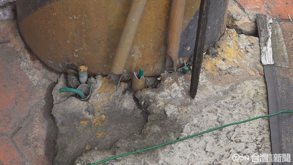 一群人圍在住家電表前查看,塑膠管斷了一段,裏頭的接地線不翼而飛,民眾表示,當天要到外面曬衣服才發現接地線不翼而飛,讓她很傻眼。