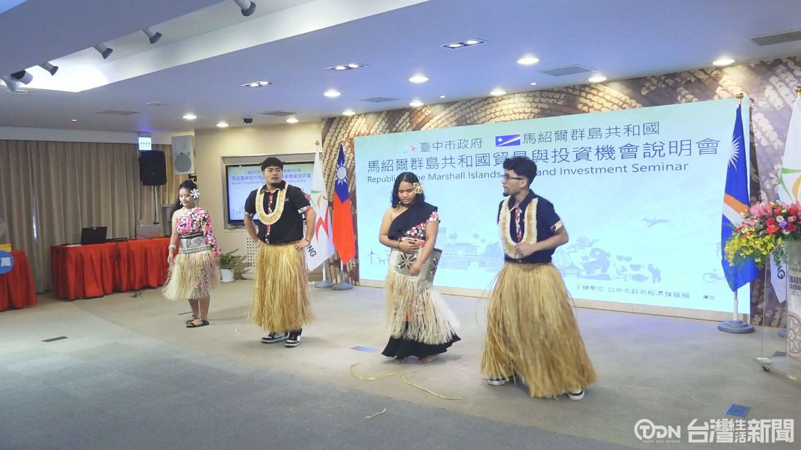 輕鬆的舞姿,展現太平洋島國風情,台中市府與馬紹爾群島共和國,深化經貿合作,舉辦「馬紹爾群島貿易與投資機會說明會」,副市長黃國榮代表市長盧秀燕出席,與在地企業代表就貿易、觀光及投資等面向進行深入討論。