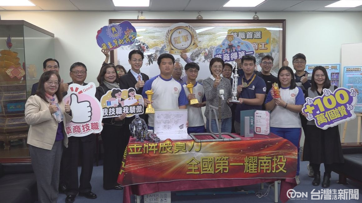 ▲圖為草屯商工師生團隊在技藝競賽中表現亮眼,接連拿下國內外三面金牌/記者林妤昕攝