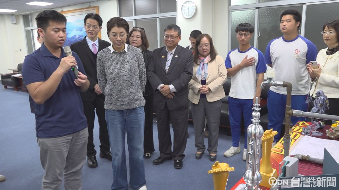 ▲圖為獲獎學生把作品搬進縣長室,分享訓練及參賽過程/記者林妤昕攝