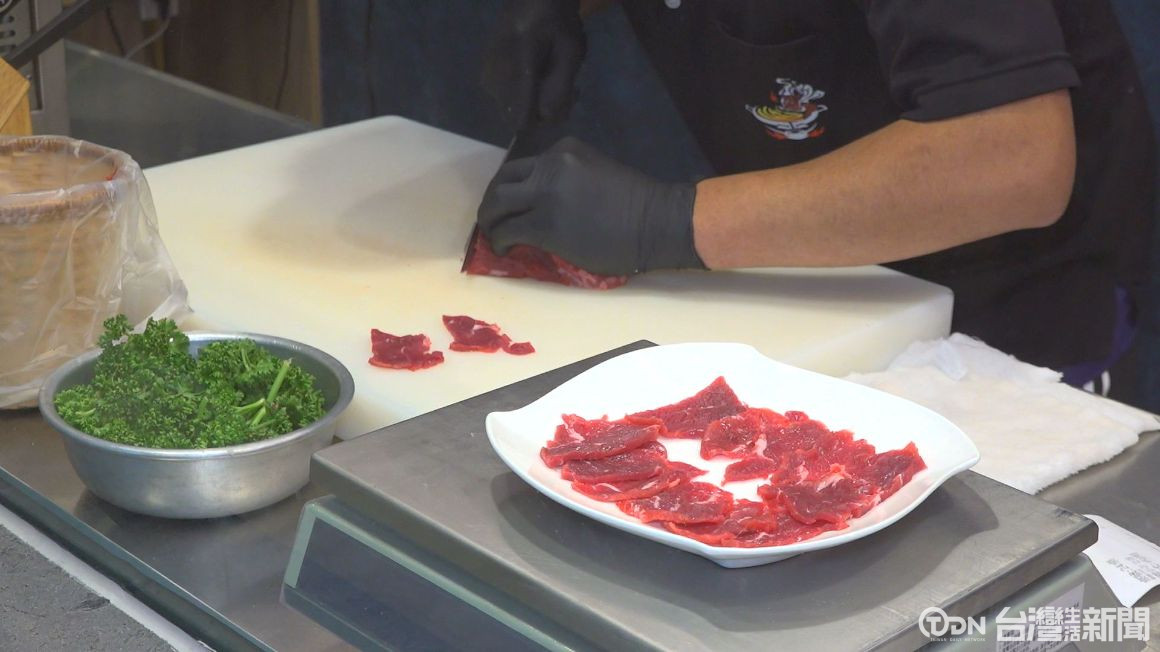 業者強調,新鮮的牛肉在客人面前切片處理,不管是火鍋涮肉,還是快炒爆香,都能讓民眾品嚐到溫體牛的軟嫩多汁。