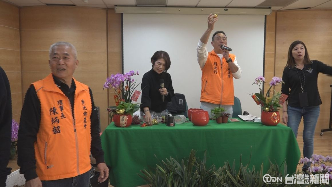 魚池鄉農會舉辦馬年迎春插花體驗活動,除了祝福大家新春快樂,也推銷魚池鄉的蘭花。
