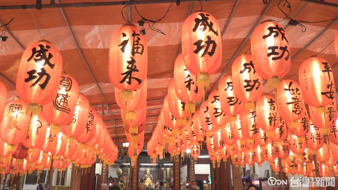 ▲鄭成功祖廟舉辦府城成功燈會,今年3千盞燈籠也先在最近點燈,照亮廟埕和周圍的巷弄,吸引民眾先去拍照。/記者 蘇英豪攝