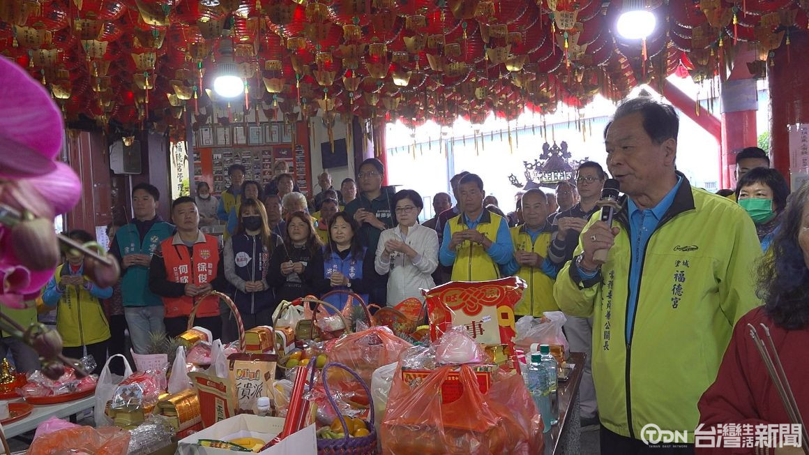 ▲大里塗城福德宮尾牙,許多信眾一早就來拜拜/記者 賴秋峰攝