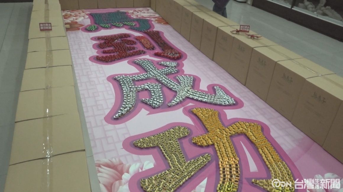 ▲臺南安定無患子故事園區用將近2000台迴力車組成馬到成功的吉祥字樣。/記者 蕭建緯攝