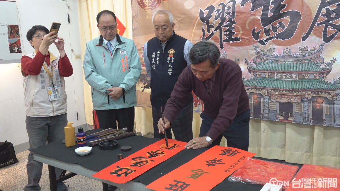 過年將要來到,上午在安平開台天后宮相當喜氣,請來臺南市書法學會理事長現場寫春聯,這也是要來宣傳2月7日,要在廟埕前舉辦迎春送春聯和品茶活動,邀請民眾一起來參與。