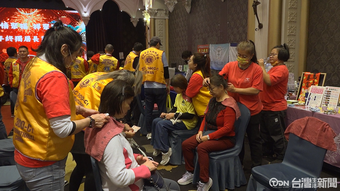 滿滿的壽桃山與冬被,都是要贈送給長者的新年禮物,希望他們能過個好年,現場也有安排義剪、義診、和精油按摩等服務,希望幫獨居長者從頭到腳煥然一新,也藉此活絡筋骨顧健康。