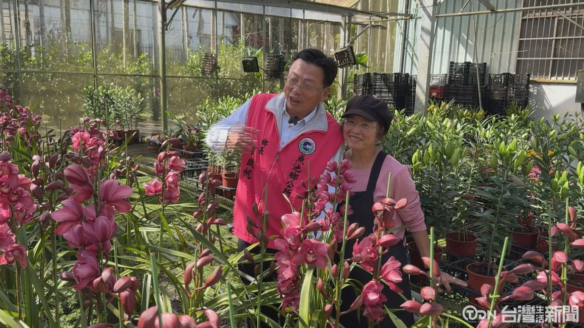 ▲虎頭蘭代表吉祥跟福氣,擺在家裡可以增添過年氣氛,魚池鄉長、縣議員、鄉民代表協助花農行銷優質虎頭蘭/記者 范宏坤 攝