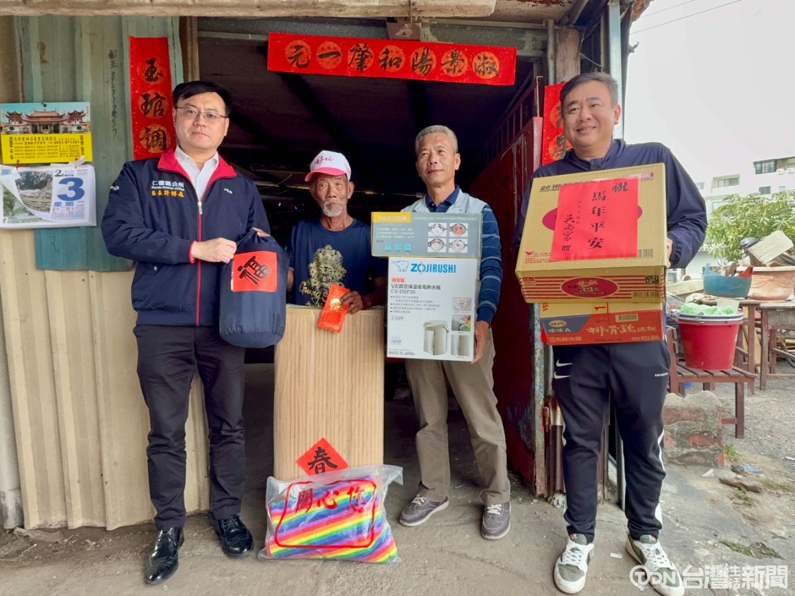 在4日下午,里長和義工們一起前往、整理環境與清出廢棄的物品,再將仁德區公所、吳禹寰議員等單位捐贈的物資、傢俱與食物搬入,並在大家的祝福下,幫整理好的家,貼上嶄新的春聯,希望可以讓黃姓老翁可以過一個溫暖的好年。