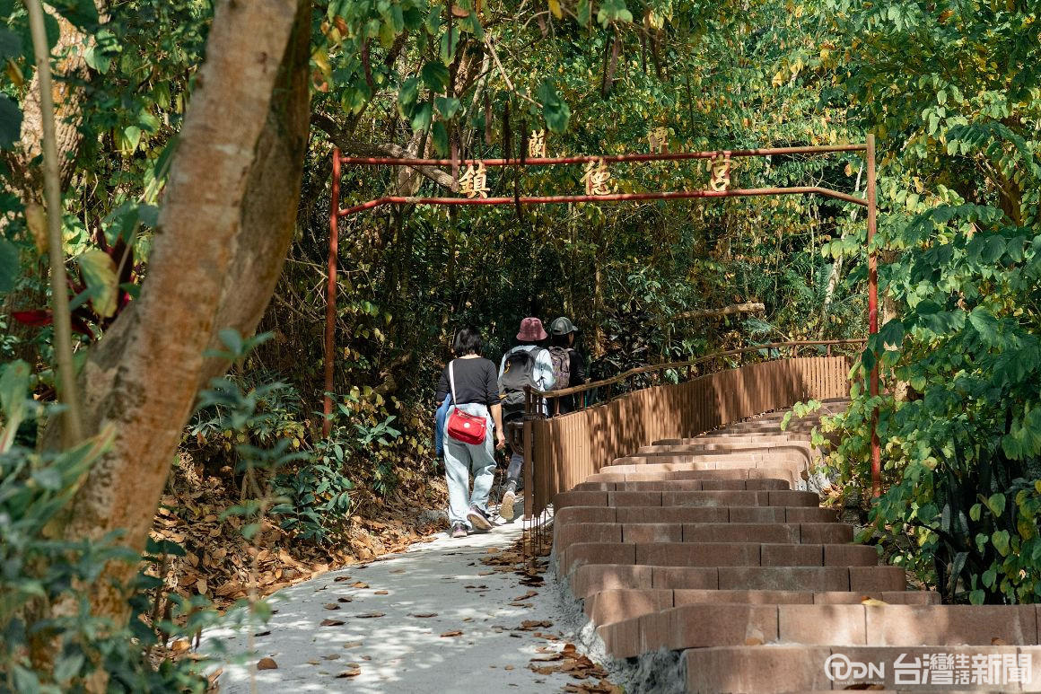 ▲蘭潭好漢坡步道增設323階樓梯,適合長幼遊客登高挑戰。/記者周書聖 攝