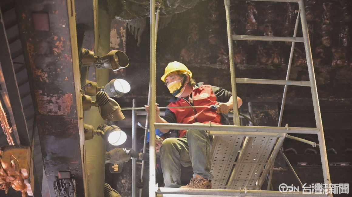 ▲北港朝天宮每年都會於農曆12月1日擲筊請示媽祖清掃大殿日期,當中工作人員也針對大殿內的排風系統進行整理。/記者 陳佳昇 攝。