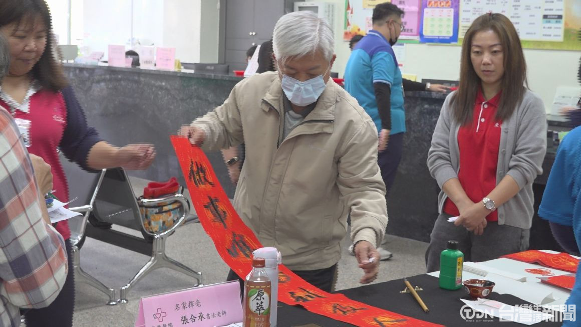 看到老師現場寫字,一張張春聯在醫院大廳,給來到現場的民眾都充滿喜氣。