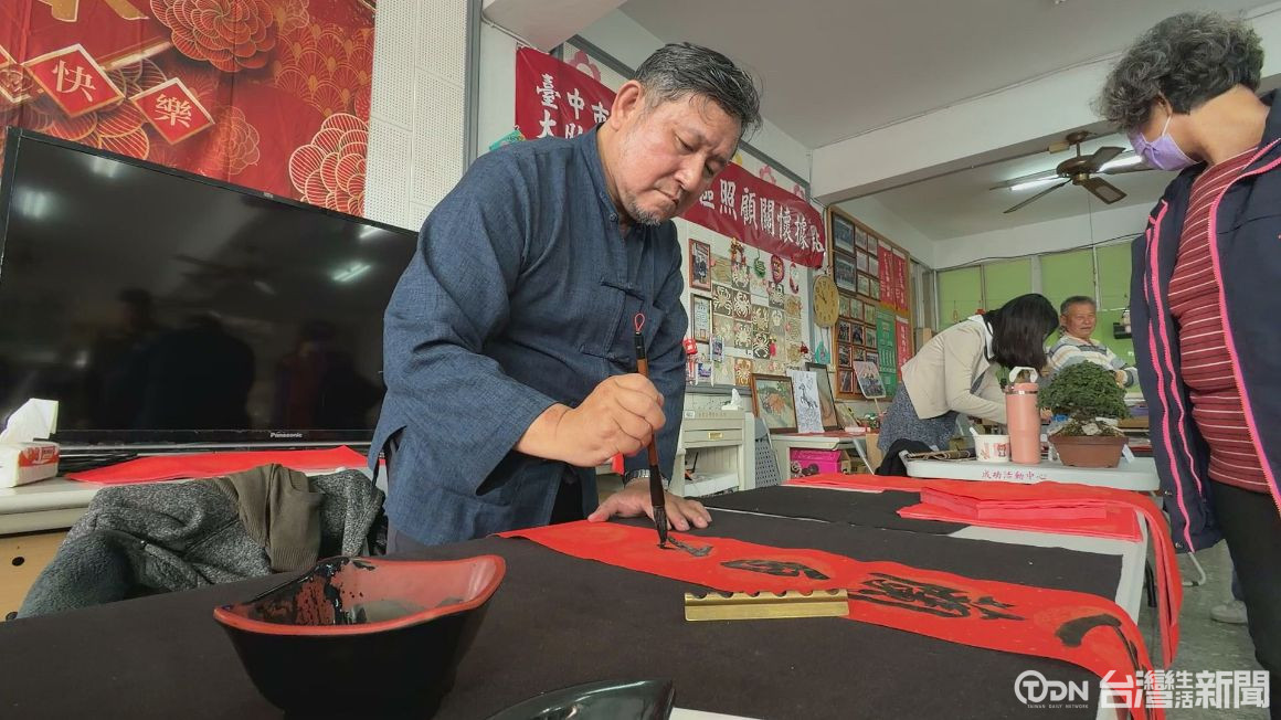 ▲大肚區成功社區特別舉辦春聯揮毫活動,透過書法藝術傳遞新春祝福/記者 楊宗桓攝