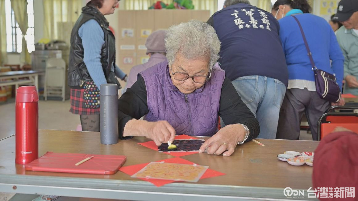 ▲為了讓長輩度過不一樣的創意新年,水林鄉水南照顧據點這天安排長輩們一起來製作手工拓畫春聯,也讓大家在課程中動手動腦。/記者 陳佳昇 攝。