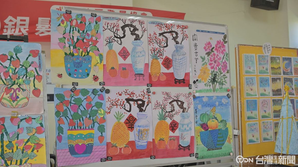 ▲現場還有展出水南據點長者的藝術作品,也希望讓大家看到長輩們學習的成果。/記者 陳佳昇 攝。