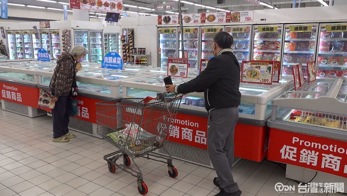▲民眾站在冷凍櫃前,仔細挑選年菜料理/記者 賴秋峰攝
