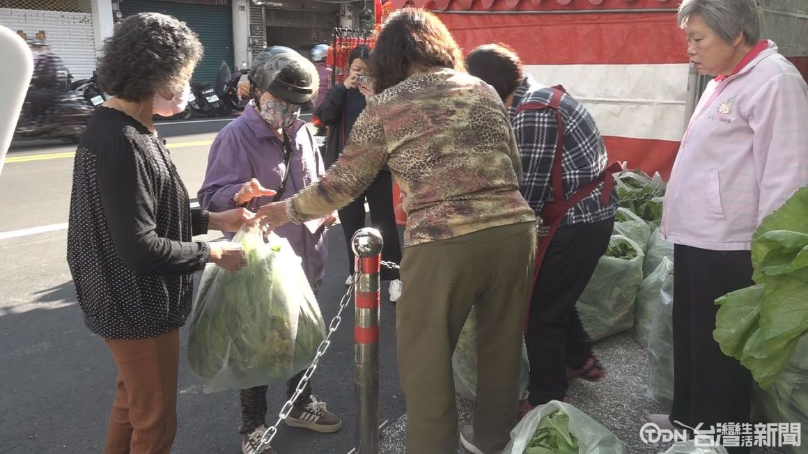 ▲民眾多是買二、三袋,一袋三顆刈菜只要一百元。/記者 王昭聖 攝