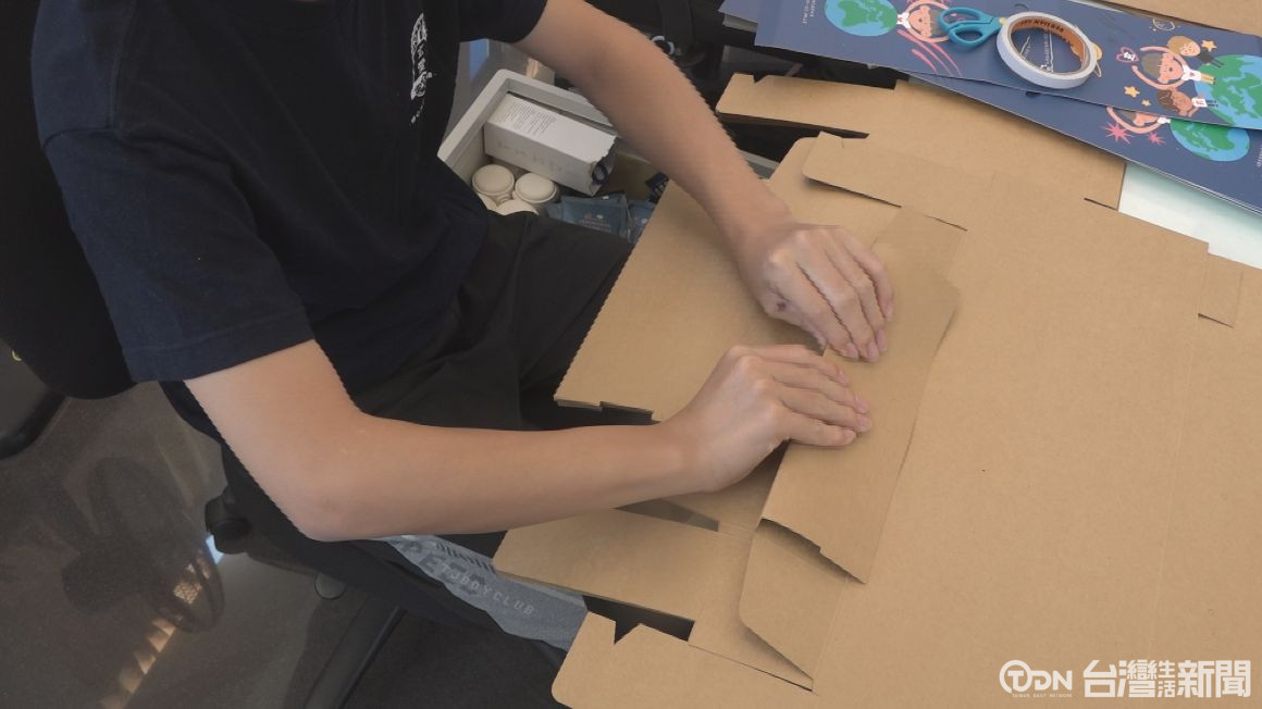 小朋友專心的製作禮盒的包裝。南投玄愛兒少關懷家園,推出過年禮盒,裡面包括善心人士捐贈的咖啡豆及保溫瓶,禮盒所賣出的所得,也將會全部用在孩子的生活照顧、教育與成長相關支出,讓社會愛心轉化為穩定的支持力量。
