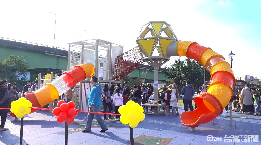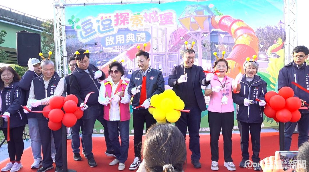 ▲眾人歡喜剪綵,宣布嶄新的遊具正式啟用/記者 陳昭安攝