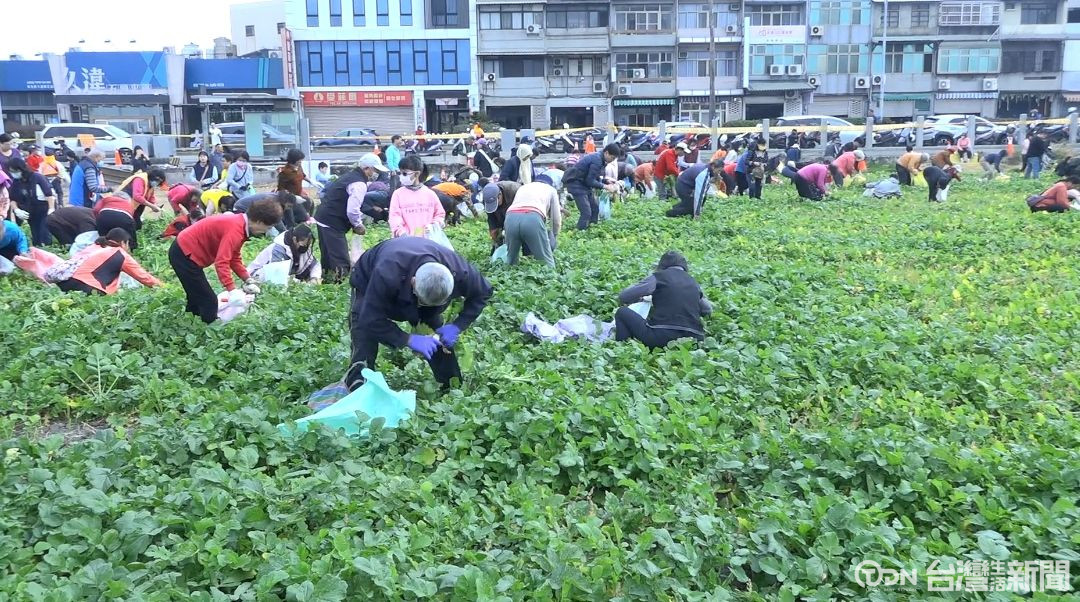 ▲田裡一片忙碌景象,民眾彎腰拔起一根根蘿蔔/記者 陳柏翰攝