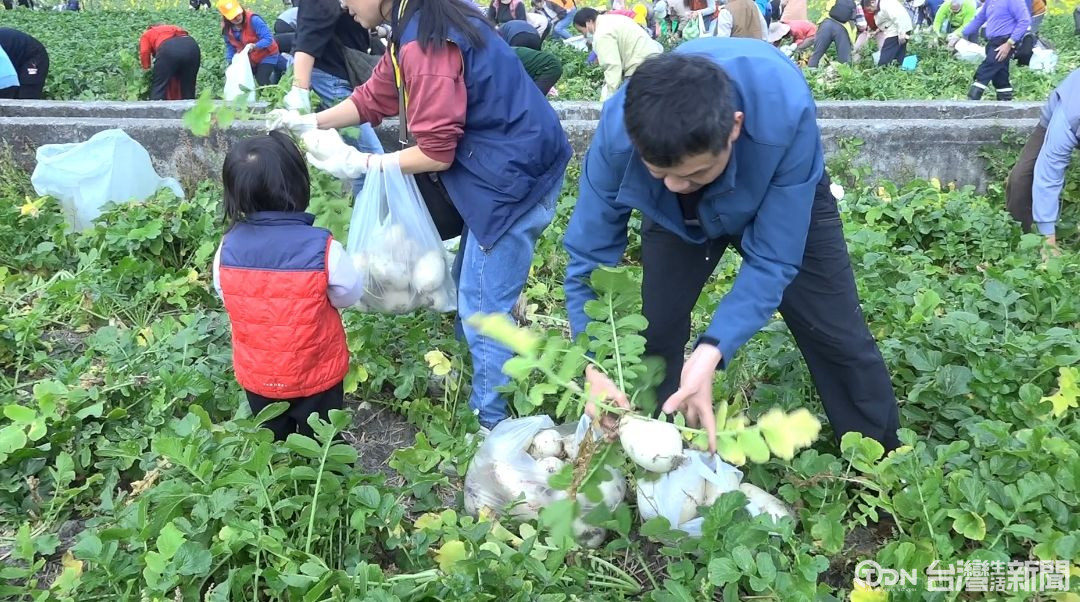 為了讓食農教育向下扎根,大甲區農會趁著一年一度的農民節,舉辦拔蘿蔔農事體驗活動,吸引大批民眾一早就到場卡位,不少人自備工具、袋子,全家大小一起下田,現場氣氛相當熱鬧,也讓不少孩子第一次能親身體驗農夫種植的辛勞。