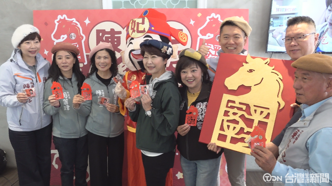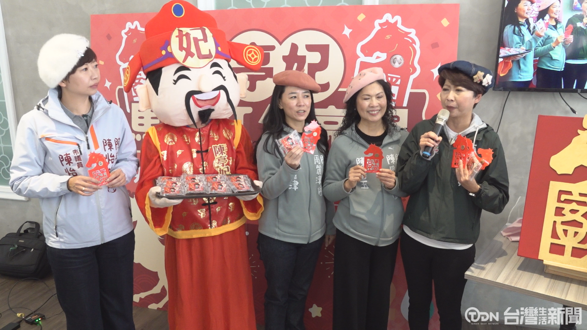 ▲立委陳亭妃公布以臺南馬上平安、奔向金未來為主題的一元紅包,過年前也會有財神拜年,要將祝福送給每位市民。/記者 蘇英豪攝
