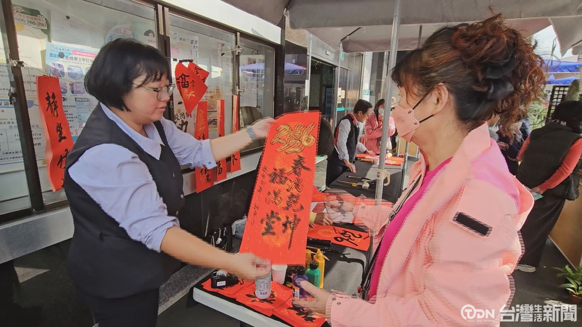 在剩沒幾天就要過農曆春節之際,前往永康區農會兌換新鈔的民眾越來越多。農會也把握民眾前來的機會,在信用部一樓門口辦理100週年慶暨小農市集活動。只要到農會超市及現場小農市集,購買500元以上的農特產品,即可憑發票兌換現場書法家手寫春聯,讓民眾提前感受濃厚的年節氣氛。