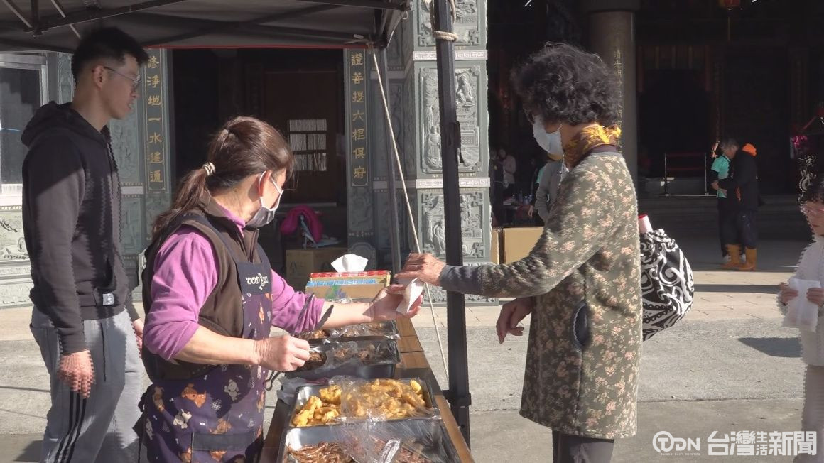 ▲聯以外,志工也準備番薯、湯圓等美食,讓民眾吃平安,也推廣在地特產 / 記者 王可萱 攝