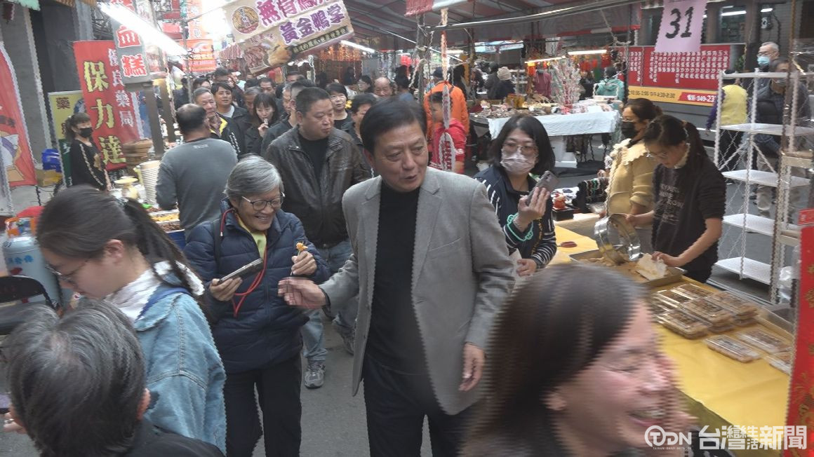 ▲鎮長簡賜勝也專程陪大家一同逛年貨大街,感受過年的氣氛。/記者 周有勝 攝