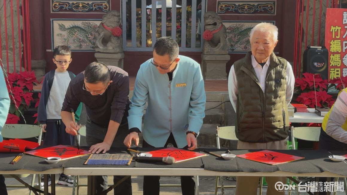 ▲妙筆揮毫寫祝福。/記者 何羿勳 攝