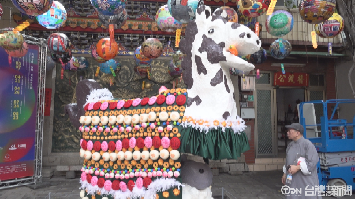 眾人期待的普濟燈會,今年依循傳統歲時祭典,選擇農曆12月25日開廟門迎神時刻,將正式點光1800顆燈籠,其中迎接馬年的主燈,就是畫面上這座趣味的等一下馬,象徵不用等到最好時機,只要願意行動,祝福就已經在路上。