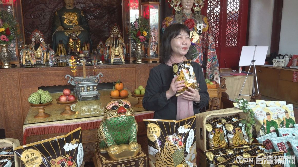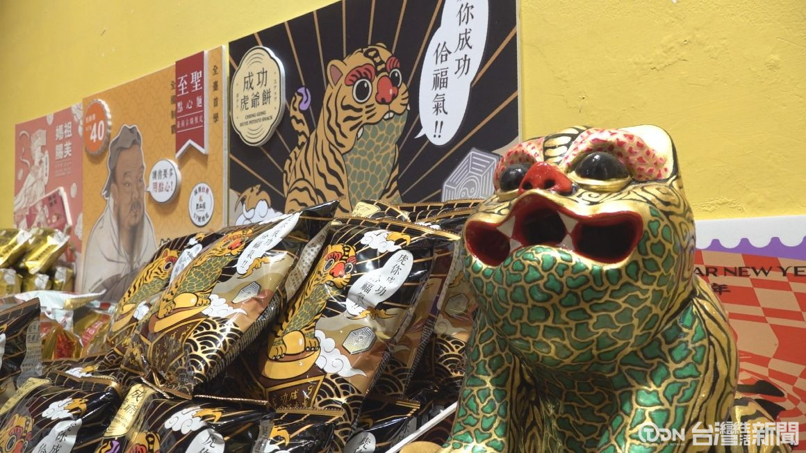 ▲臺南市政府文化局發表古蹟限定商品成功虎爺餅。/記者 蘇英豪攝
