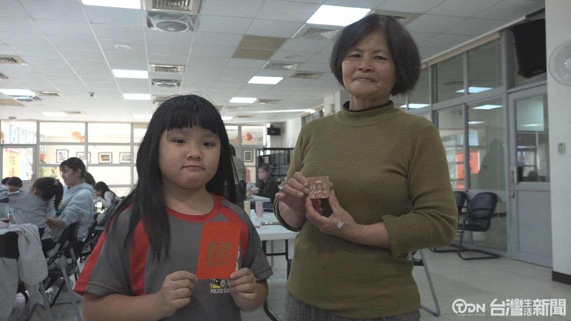 ▲在老師傳授很多製作的要領之後,學員終於完成屬於自己親手製作的圖章,最後塗上印泥,將圖案印在紅包上,獲得滿滿的成就感/記者 范宏坤 攝