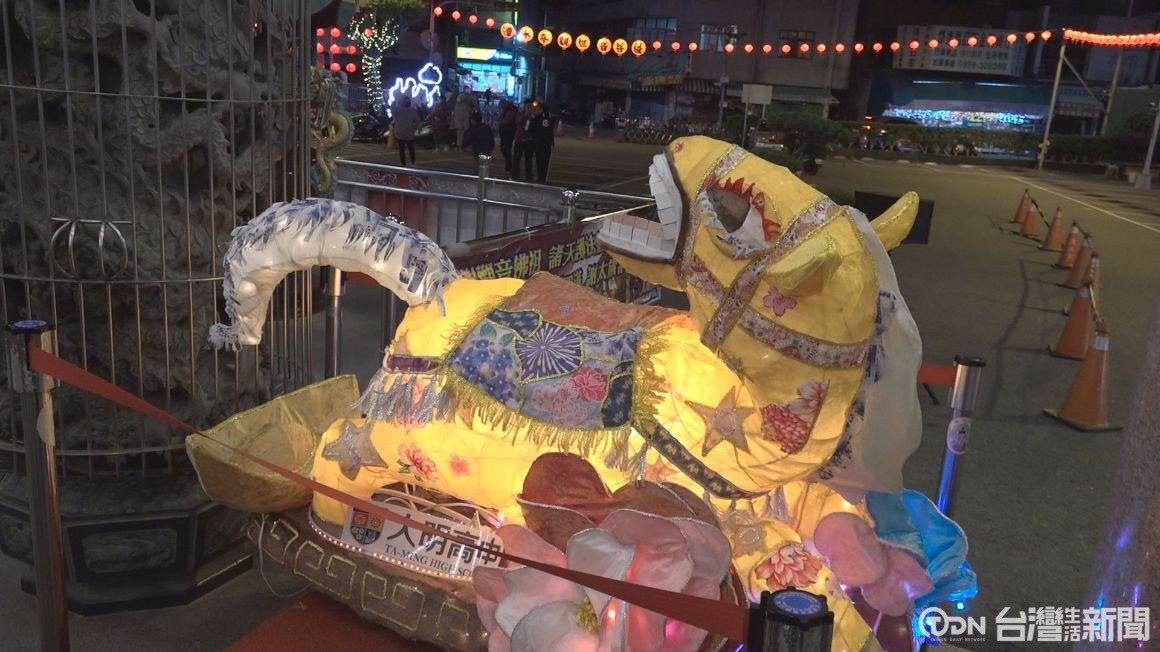 ▲大明高中美工科師生也大力幫忙,打造兩座《金馬迎春》和《馬上有錢花》的花燈/記者 李晉仰攝