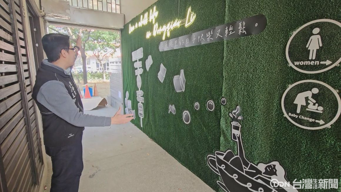 ▲臺南永康東橋里活動中心打造網美打卡牆。/記者 蕭建緯攝