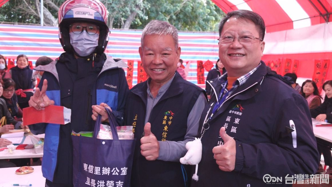 台中市東區東信福德祠,因為長年推動社會公益不遺餘力,總統賴清德贈匾「民佑澤惠」,這天由宗教委員會召集人余政憲出席揭匾,由於這天恰巧也是廟方舉辦寒冬送暖及圍爐活動,對於這項肯定,都表示實至名歸。
