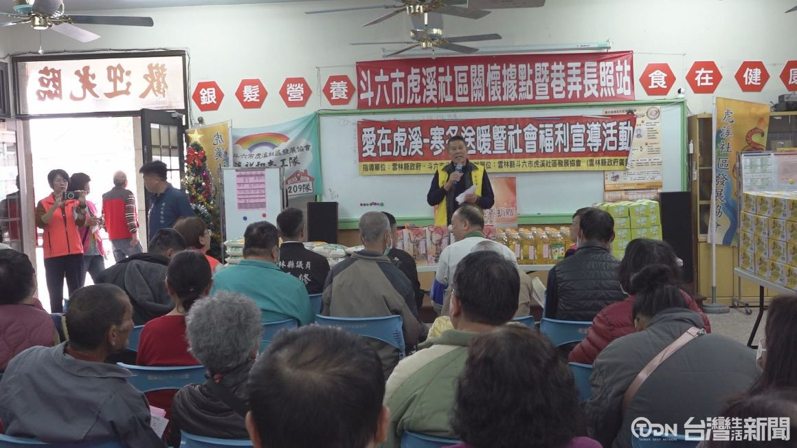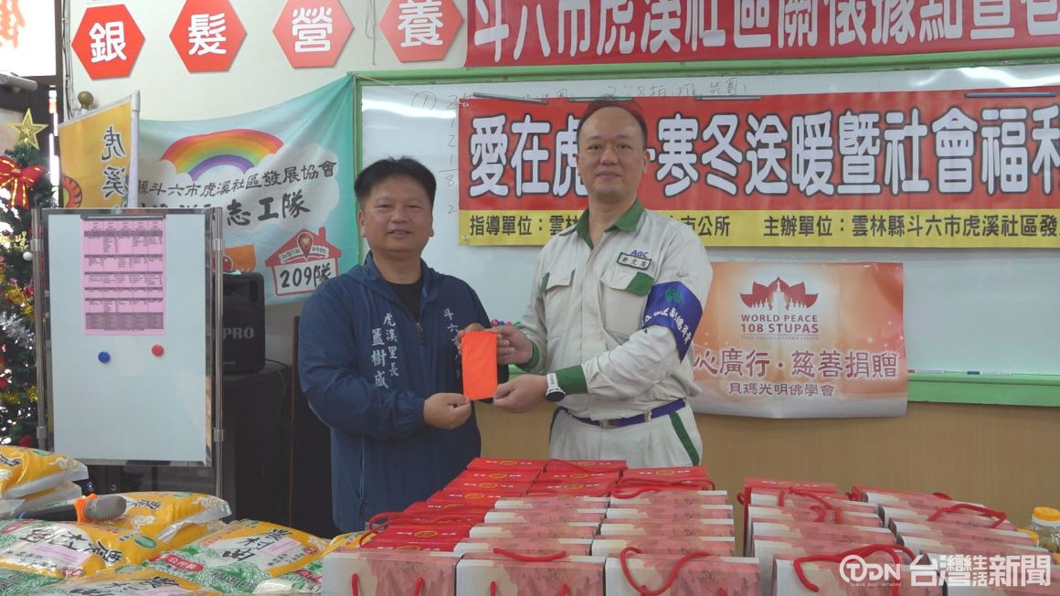 斗六虎溪社區理事長跟里長發起的媒合企業做愛心的送暖活動,今年來到第五年,包括鄰近雲林科技園區內的日商公司跟社區內7個農場、商行跟慈善等團體,是共同提供29份乾糧、白米、毯子,還有紅包等實用物資,要讓大家都可以過一個好年。
